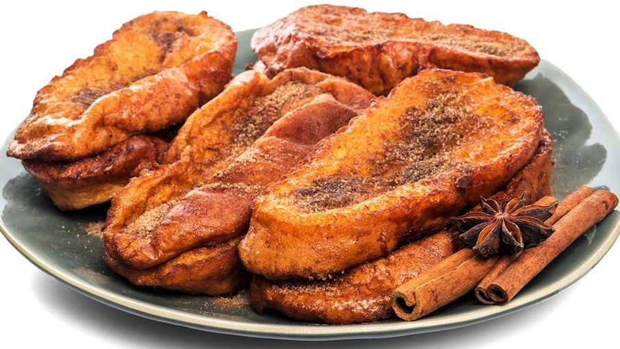 Rabanada is the Portuguese and Brazilian version of french toast. It's made with round or oval stale bread cut in thick slices that's dipped in milk (or milk, sugar, and vanilla) and beaten eggs, fried in oil, then sprinkled with cinnamon sugar.
